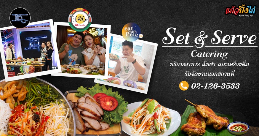 ขอแนะนำ Set Catering ของร้าน “แก้วปิ้งไก่” ที่จัด Set มาเพื่อเสิร์ฟในงานเลี้ยงของคุณโดยเฉพาะ จัดเมนูสำหรับจัดงานนอกสถานที่ ให้บริการ อาหาร ส้มตำ เครื่องดื่ม แบบครบจบที่ Set เดียว ไม่ต้องไปหาซื้อของเพิ่มสำหรับงานเลี้ยงของคุณ ทางร้านแก้วปิ้งไก่ของเรา จัดให้ 4 Set 4 รูปแบบตามความต้องการของคุณลูกค้า รายละเอียดมีดังนี้